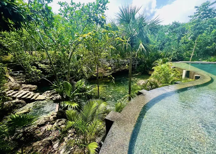 El Apartamento The Strelitzia Project With Private Cenote & Infinity Pool Playa del Carmen está a una distancia de 2 km de la Playa accesible para personas con movilidad reducida y cuenta con instalaciones de spa como baño de vapor turco, un solárium y un jacuzzi. El Terminal marítima de Playa del Carmen se encuentra a 10 minutos en coche del apartamento y a 5 km del aeropuerto Nacional de Playa del Carmen.